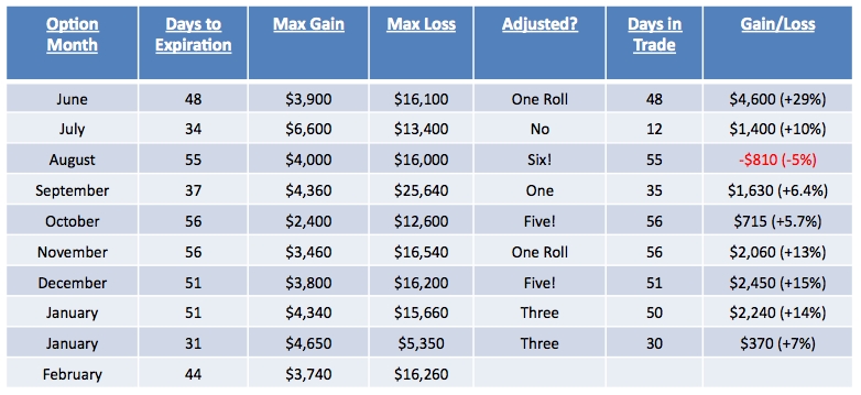 The complete record of the trades in the account being traded in this blog from May 29, 2009 to date is displayed below. The account began with $40,238 and today's balance is $55,427, a total gain of 38%.